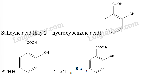 Cho salicylic acid (hay 2 – hydroxybenzoic acid) phản ứng với methyl alcohol có mặt sulfuric acid làm xúc tác, thu được methyl salicylate (C8H8O3) dùng làm chất giảm đau (có trong miếng dán giảm đau khi vận động hoặc chơi thể thao). Viết phương trình hóa học của phản ứng trên.