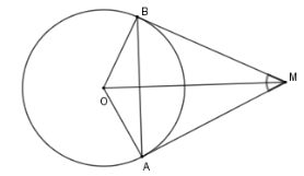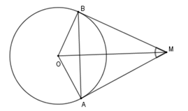 Cho đường tròn \(\left( {O;R} \right)\), lấy điểm \(M\) nằm ngoài \(\left( O \right)\) sao cho \(OM = 2R.\) Từ M kẻ tiếp tuyến \(MA\) và \(MB\) với \(\left( O \right)\) (\(A,B\) là các tiếp điểm).