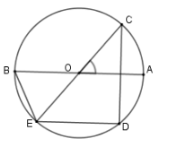 Cho đường tròn \(\left( O \right)\) đường kính \(AB,\) vẽ góc ở tâm \(\widehat {AOC} = 55^\circ \) . Vẽ dây \(CD\) vuông góc với \(AB\) và dây \(DE\) song song với \(AB.\) Tính số đo cung nhỏ \(BE\)