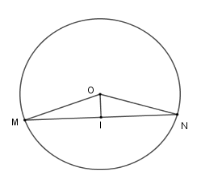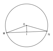 Cho \(\left( {O;R} \right)\) và dây cung \(MN = R\sqrt 3 .\) Kẻ \(OI\) vuông góc với \(MN\) tại $I$ .