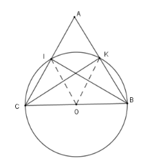 Cho tam giác \(ABC\) cân tại $A$ . Vẽ đường tròn tâm $O$, đường kính \(BC\). Đường tròn \(\left( O \right)\) cắt $AB$, $AC$ lần lượt tại \(I,K.\)