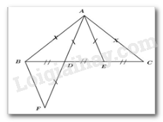 Trên tia đối của tia $DA$  lấy điểm $F$  sao cho \(AD = DF\).
