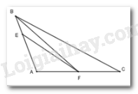 Mà \(\left\{ \begin{array}{l}AB = AC\left( {gt} \right)\\BF = AE\left( {cmt} \right)\end{array} \right. \Rightarrow BF < AB\)