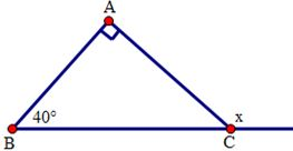 \(x = \widehat A + \widehat B = 90^\circ  + 40^\circ  = 130^\circ \)