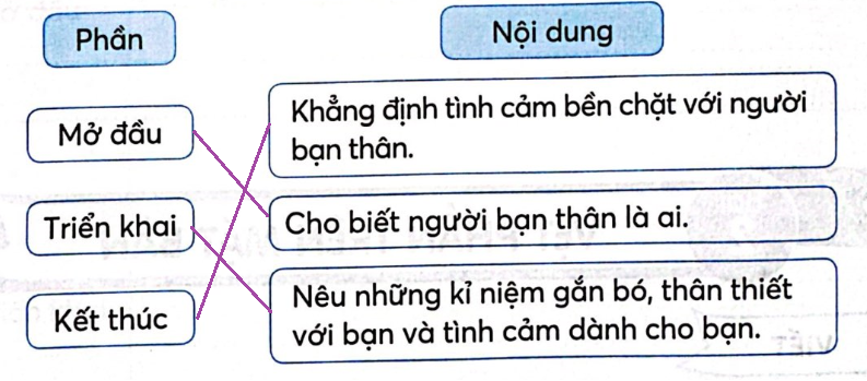 b. Nối nội dung tương ứng với từng phần của đoạn văn.
