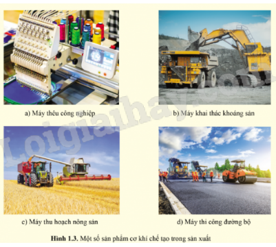 Phân tích vai trò của các sản phẩm cơ khí chế tạo ở hình 1.3 đối với quá trình sản xuất.