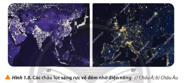 Có ý kiến nhận định điện năng là thành tựu cốt lõi và huyết mạch của Vật lí cho nền văn minh của nhân loại. Hình 1.8 cho thấy các châu lục sáng rực về đêm. Trình bày quan điểm của em về nhận định này.