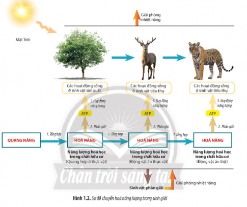 Quan sát Hình 1.2, hãy mô tả các giai đoạn chuyển hóa năng lượng trong sinh giới.
