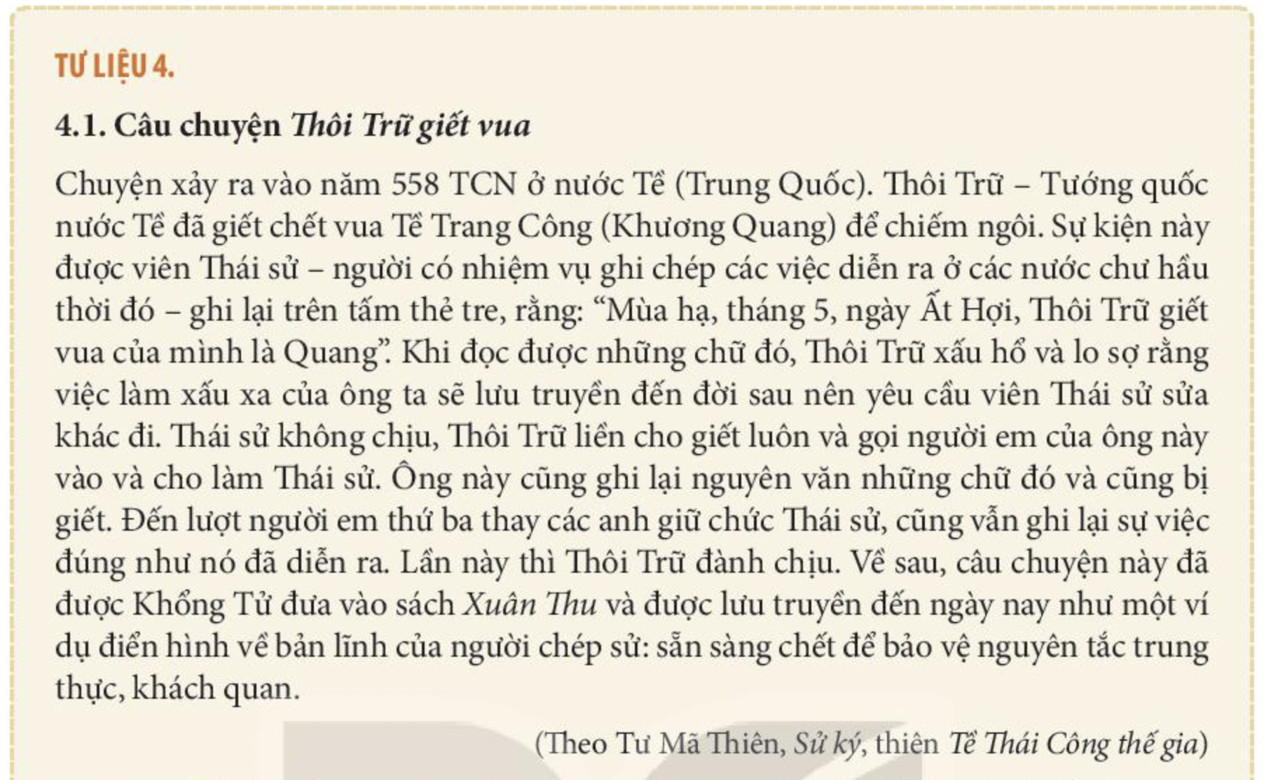 1. Câu chuyện Thôi Trữ giết vua được lưu truyền để tôn vinh đức tính nào của nhà sử học