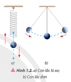 – Cố định một đầu của lò xo, gần vật nặng vào đầu còn lại của lò xo như Hình 1.2a. Kéo vật nặng xuống một đoạn theo phương thẳng đứng và buông nhẹ.