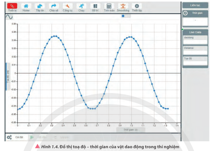 Hình dạng đồ thị tọa độ – thời gian của vật dao động trong Hình 1.4 là đồ thị theo dạng hình cosin.