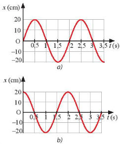 b) Biên độ của dao động thứ nhất bằng hai lần biên độ của dao động thứ hai, cùng chu kì, cùng pha.