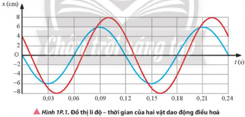Xác định biên độ, chu kì, tần số, tần số góc của mỗi dao động và độ lệch pha giữa hai dao động có đồ thị li độ – thời gian như trong Hình 1P.1.