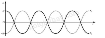 Dựa vào trục Ot, ta thấy hai vật có cùng chu kì, nên hai vật có cùng tần số. Xét thời điểm ban đầu, vật 1 xuất phát từ vị trí cân bằng, vật 2 xuất phát từ biên âm, do đó hai vật dao động vuông pha nhau.