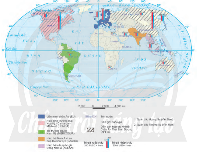 – Phương pháp bản đồ – biểu đồ: thể hiện giá trị xuất – nhập khẩu.