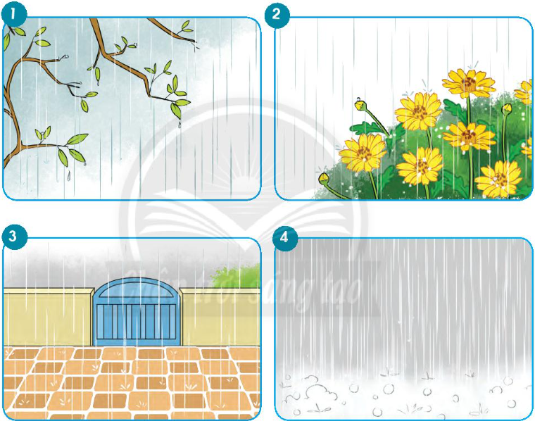 – Tranh 4: Mưa rơi tí tách/ Hạt trước hạt sau.