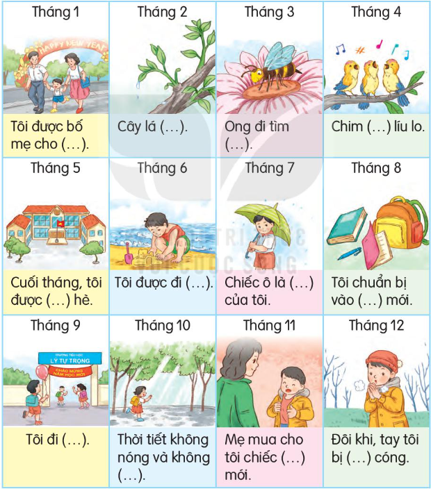 Nói tên các tháng trong năm. Dùng từ ngữ phù hợp để hoàn thiện câu.