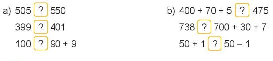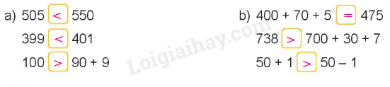 Bước 2: So sánh giá trị ở hai vế rồi điền dấu thích hợp vào ô trống.