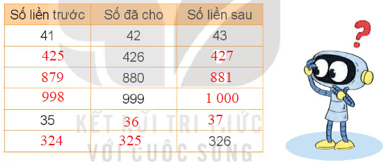 Mẫu: Số liền trước của 15 là 14, số liền sau của 15 là 16. Ta có: 14, 15, 16 là ba số liên tiếp; 16, 15, 14 là ba số liên tiếp.