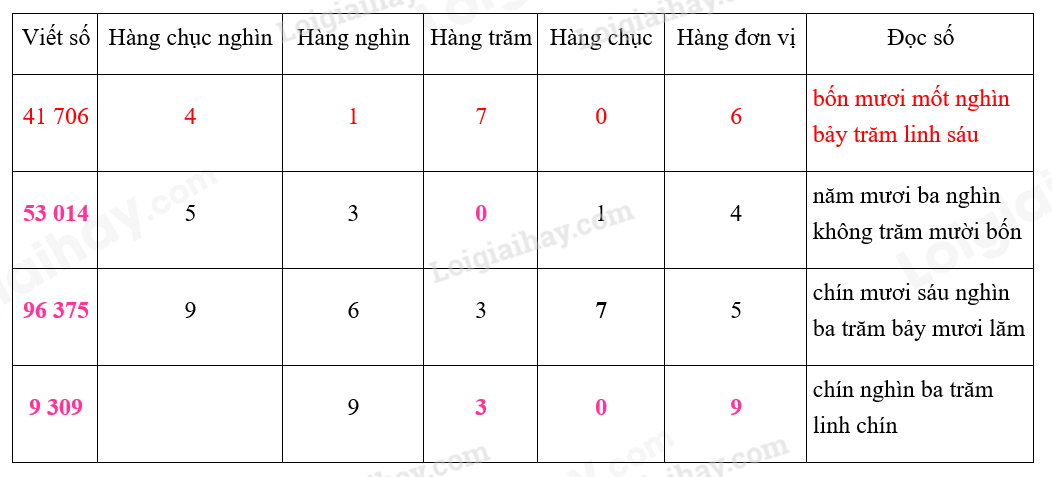 – Viết số lần lượt từ hàng chục nghìn, hàng nghìn, hàng trăm, hàng chục, hàng đơn vị đơn vị