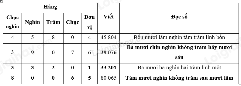 – Viết số lần lượt từ hàng chục nghìn, hàng nghìn, hàng trăm, hàng chục, hàng đơn vị.