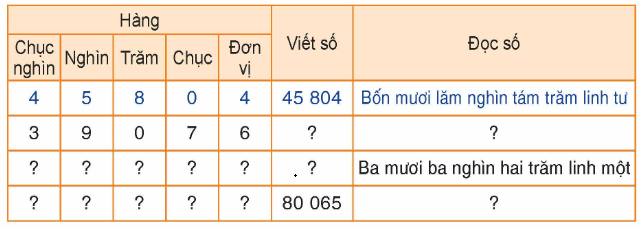 – Viết số lần lượt từ hàng chục nghìn, hàng nghìn, hàng trăm, hàng chục, hàng đơn vị.