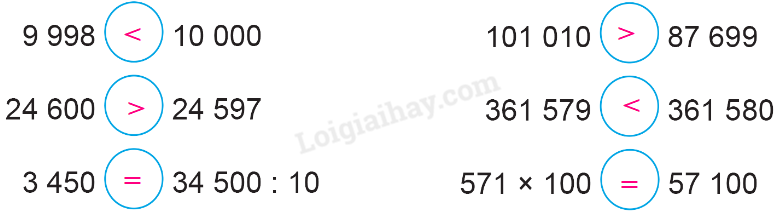 – Nếu hai số có cùng số chữ số thì so sánh từng cặp chữ số ở cùng một hàng kể từ trái sang phải.