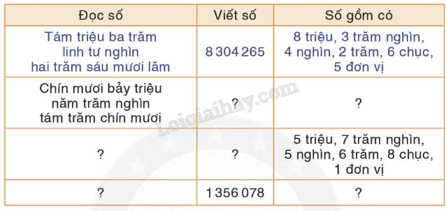 Trả lời câu hỏi 1 trang 6 SGK Toán 5 Bình minh