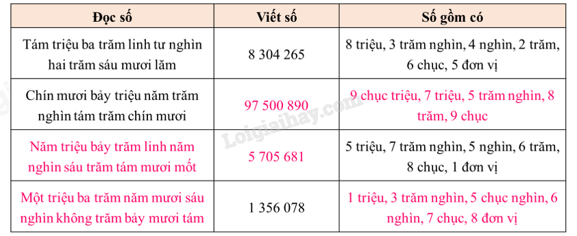 – Hàng triệu, hàng chục triệu, hàng trăm triệu hợp thành lớp triệu.