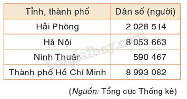 Số dân của thành phố Hồ Chí Minh là nhiều nhất; số dân của tỉnh Ninh Thuận là ít nhất.