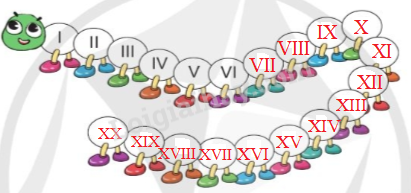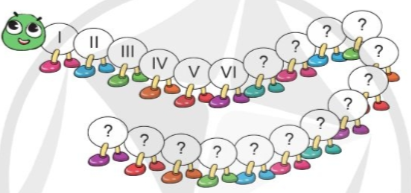 Trên mình chú sâu ghi các số La Mã lần lượt từ 1 đến 6. Vậy ta điền tiếp như sau: