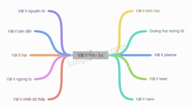 Hãy vẽ sơ đồ tư duy mô tả các nhánh nghiên cứu của vật lí hiện đại.