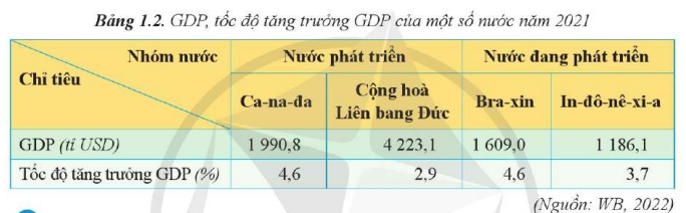 – Phân biệt các nước phát triển (Ca-na-đa, Cộng hòa Liên bang Đức) và các nước đang phát triển (Bra-xin, In-đô-nê-xi-a) về các chỉ tiêu: GNI/người, cơ cấu kinh tế và HDI).
