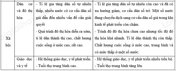 Lập bảng tóm tắt sự khác nhau về kinh tế và xã hội của hai nhóm nước phát triển và đang phát triển
