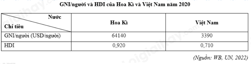 Như vậy, các chỉ tiêu về GNI/người, cơ cấu kinh tế và HDI của các nước phát triển đều cao và tiến bộ hơn so với các nước đang phát triển.