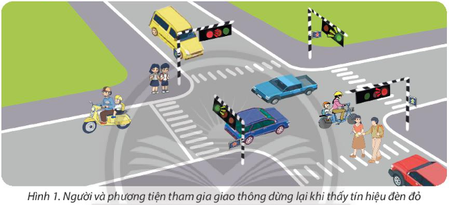 Quan sát Hình 1 và cho biết có những người và phương tiện tham gia giao thông nào dừng lại. Tại sao?