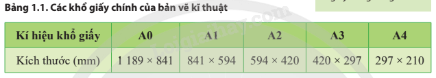 Dựa vào bảng 1.1 để xác định mối liên hệ giữa các khổ giấy.