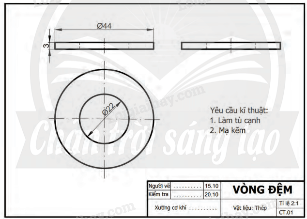 – Đây là bản vẽ kĩ thuật chi tiết Vòng đệm