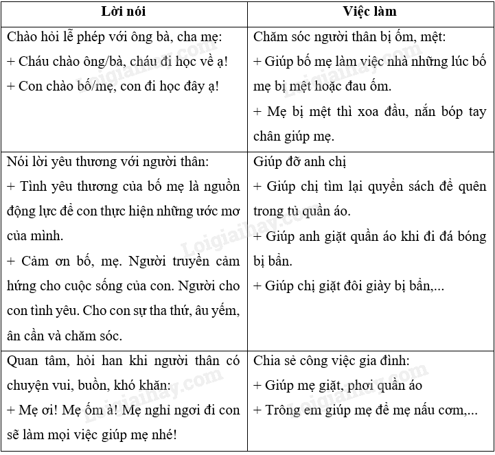 – Thể hiện những lời nói và việc làm để người thân hài lòng trong cuộc sống hàng ngày.