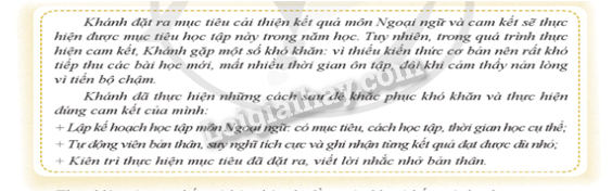– Cam kết mà Khánh đã đề ra: Cải thiện môn ngoại ngữ và thực hiện được mục tiêu học tập này trong năm học.