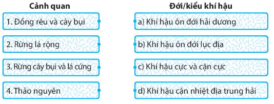 Ghép các ô ở bên trái với các ô ở bên phải sao cho phù hợp để thấy được sự phân hóa thiên nhiên trong đới ôn hòa.