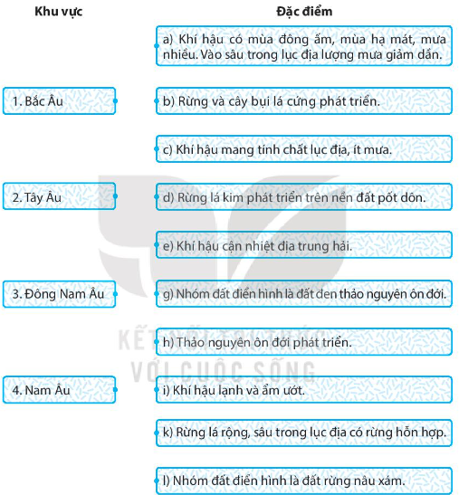 – Nhớ lại kiến thức đã học phần đặc điểm về khí hậu và đới thiên nhiên ở châu Âu Tr. 98, 99, 100 để làm bài.