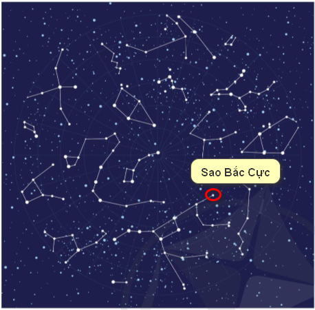 Xác định vị trí sao Bắc Cực ở bản đồ sao (hình 1.6)