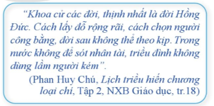 Bước 2: Đọc tư liệu trang 70 để biết được nhận định của nhà sử học Phan Huy Chú về sự phát triển của khoa cử dưới thời Lê Thánh Tông.