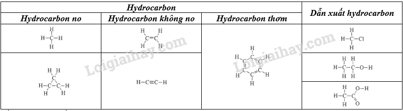 Các hợp chất thuộc loại hydrocarbon: CH4; C2H2; C2H4; C6H6.