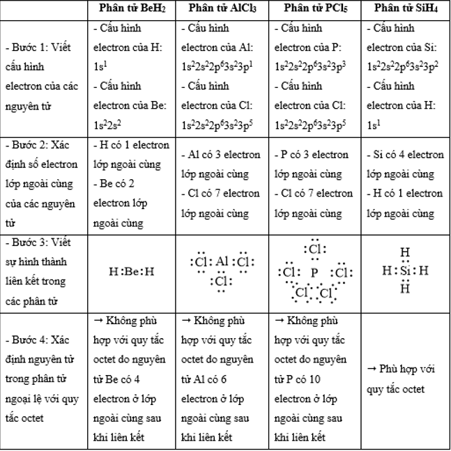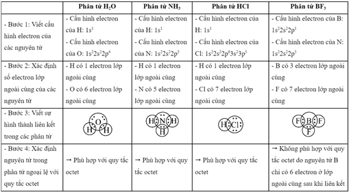 + Bước 4: Xác định nguyên tử trong phân tử ngoại lệ với quy tắc octet