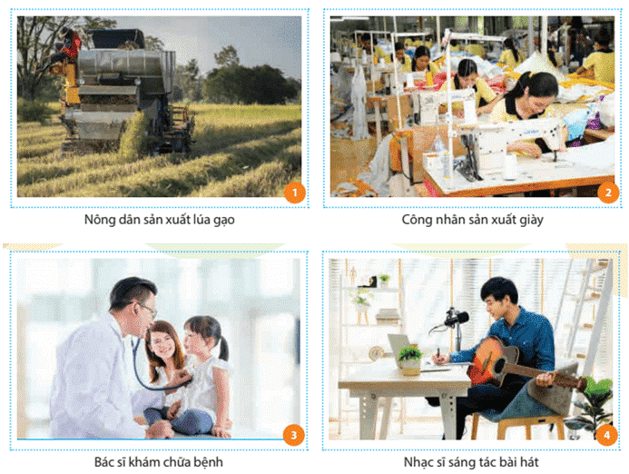 – Em có suy nghĩ gì về lao động của người nông dân, công nhân, bác sĩ, nhạc sĩ trong các hình ảnh trên?