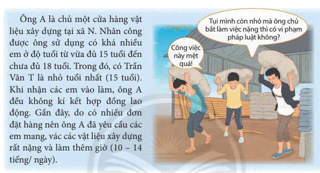 – Em hãy cho biết hành vi của ông A có vi phạm pháp luật lao động về việc sử dụng lao động chưa thành niên không. Vì sao?