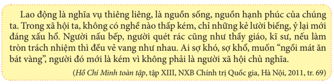 – Nghĩa vụ: Mỗi công dân có nghĩa vụ lao động để tự nuôi sống bản thân mình, gia đình và góp phần duy trì, phát triển xã hội.