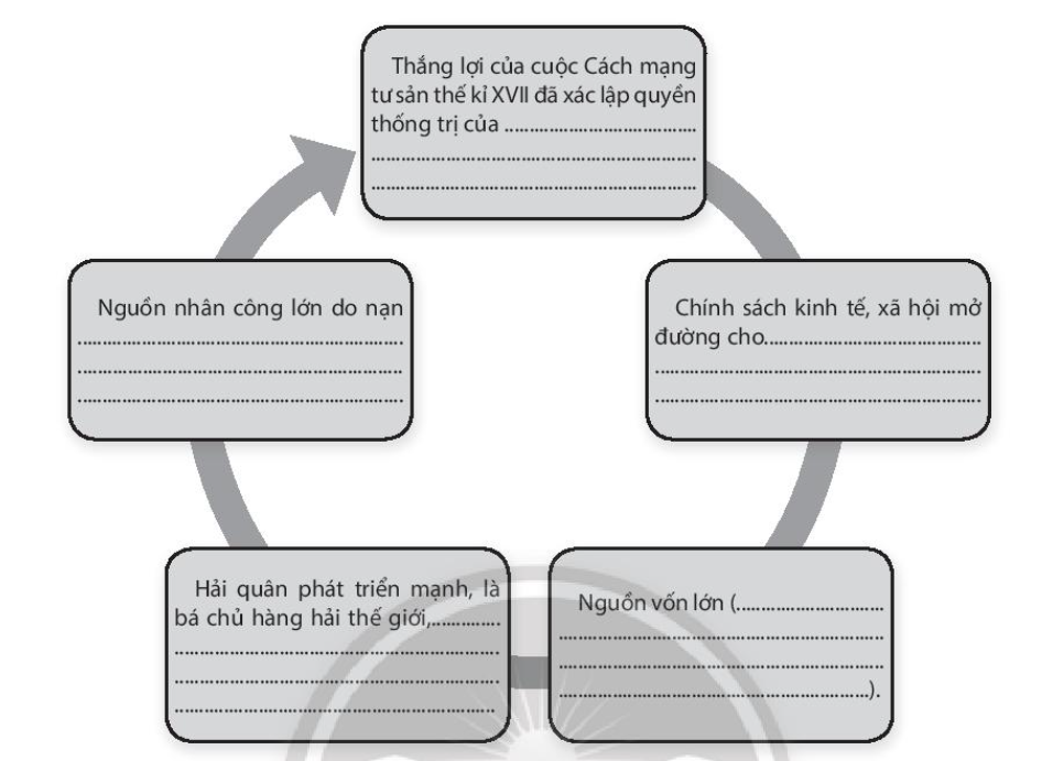 Câu 3. Điền vào phần trống trong các ô dưới đây để làm rõ bối cảnh lịch sử dẫn đến hai cuộc cách mạng công nghiệp thời cận đại.